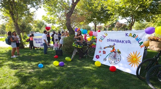 Açıklamanın ardından etkinliğe katılan bisikletli kadınlar, trafik ekiplerinin gözetiminde merkez Sur ilçesinde bulunan Dağkapı Meydanı'na kadar pedal çevirdi.