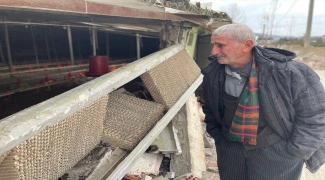 Merkeze bağlı Dereli Tütüncü köyü Dedeler Mahallesi'nde Ahmet Aslan'a ait 2 katlı tavuk kümesi de depremde hasar gördü.
