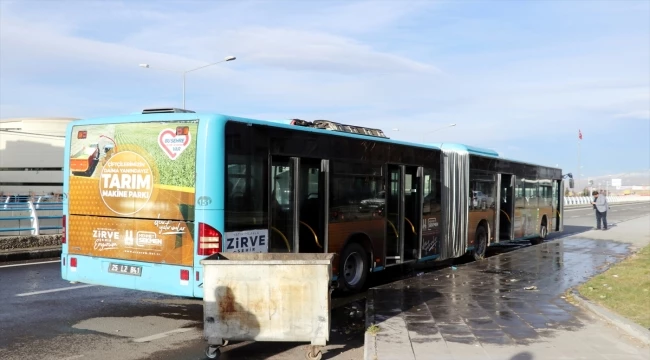 Sürücünün, Çat yolu üzerindeki Erzurum Şehir Hastanesi karşısında yol kenarına çektiği otobüs, aniden alev almaya başladı.