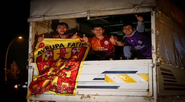 Galatasaray kafilesi, Eryaman Stadı'ndan kalabalık bir taraftar grubu eşliğinde Esenboğa Havalimanı'na geldi.