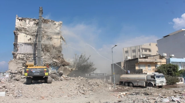 Depremlerde ağır hasar alan İbrahim Karaoğlanoğlu Caddesi'nde bulunan 6 katlı bina, güvenlik önlemlerinin alınmasının ardından iş makineleriyle kontrollü şekilde yıkılıyor.