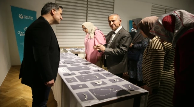 Sergideki takıları büyük bir ilgiyle inceleyen davetliler sanatçılardan eserleri hakkında bilgi aldı.