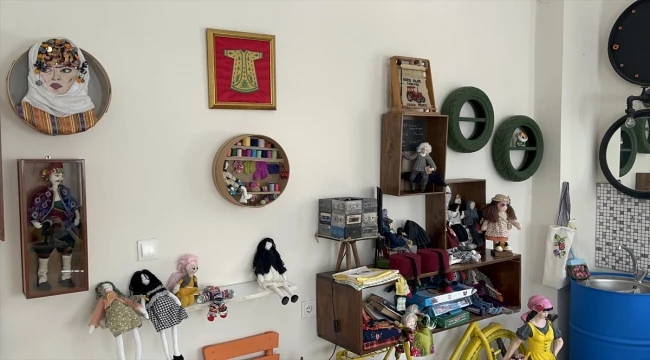 4 odada farklı konseptlerin yer aldığını belirten Çevikbaş, "Kullanılmayan telefon kulübesinden kütüphane, küvetten koltuk yaptık. 1970'li yılların sanatçılarının posterlerinden bir köşemiz var. Atık lastiklerden çiçeklik ve sehpalar, kömür küreklerinden saatlerimiz bulunuyor. Atık malzemelerle birçok bez bebek yaptık." diye konuştu.