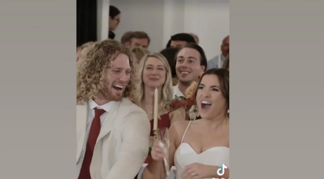 Bu ilginç açıklamanın ardından salonda bulunan davetlilerin kısa süreli şaşkınlık yaşadıkları görüldü. Çiftin düğününden yayınlanan video ise kısa süre içerisinde sosyal medya da viral oldu.