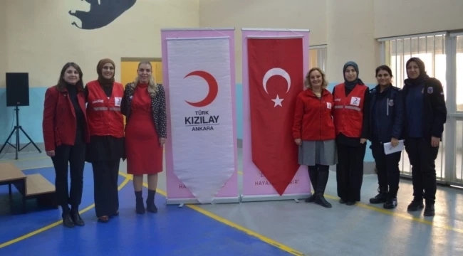Ziyaretin devamında, Meltem Elmacı, Türk Kızılayı’nın tarihsel gelişimi ve insani yardım faaliyetlerini anlatan bir sunum gerçekleştirdi. Sunumda, Kızılay’ın hem ülke içinde hem de uluslararası alanda üstlendiği rolü ve toplumun her kesimine yönelik desteğini içeren bilgilendirmeler yapıldı. Katılımcılar, Türk Kızılayı’nın tarihi misyonu ve sağladığı yardımlar hakkında aydınlatıcı bir slayt gösterimi izlediler.