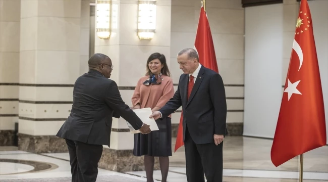 Cumhurbaşkanlığı Külliyesi'ndeki kabulde, Büyükelçi Sikazwe, Erdoğan'a güven mektubu sundu.