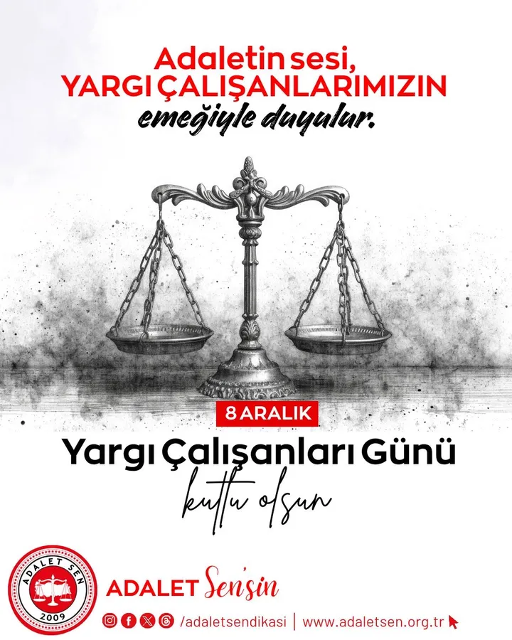 Adalet Sen tarafından yapılan açıklamada, “Adalet bir ülkenin vicdanıdır. Bu vicdanı ayakta tutan tüm adalet emekçilerinin 8 Aralık Yargı Çalışanları Günü kutlu olsun.” ifadeleri kullanıldı. Sendikanın mesajı, hem yargı çalışanlarının omuzlarında taşıdığı sorumluluğu hem de adaletin sosyal hayatın temel direklerinden biri olduğunu açık bir dille ifade etti.
