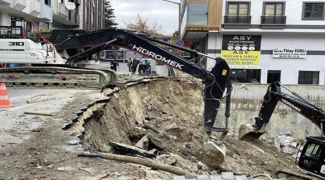 İş makinelerince çöken alandaki hafriyatın kaldırılması için çalışma başlatıldı.