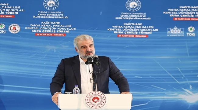 Kurum, Kağıthane Yahya Kemal Mahallesi'nde kentsel dönüşüm kapsamında yenilenen konutların kura çekimi töreninin ardından basın mensuplarına açıklamalarda bulundu.