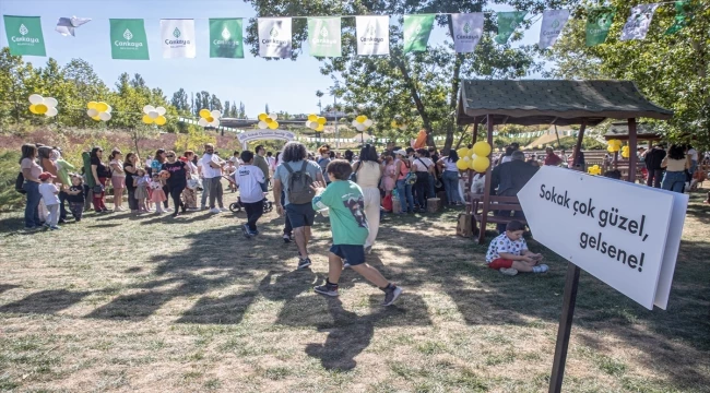 Birlik Mahallesi'ndeki İsmet İnönü Parkı'nda düzenlenen şenlikte çocuklar seksek, beştaş ve ip atlama oyunları oynadılar.