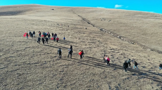 Burada köy sakinlerinden bölge hakkında bilgi alan gençler, Türkiye Dağcılık Federasyonu Kars Temsilcisi Alpay Korkmaz öncülüğünde Ağadeve Dağı'na yürüyüşe geçti.
