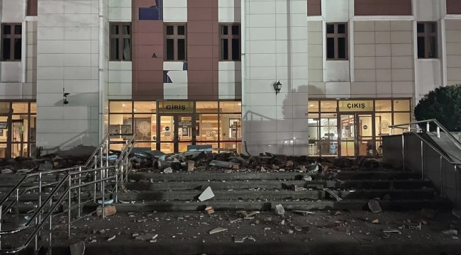 Çevre illerden de hissedilen depremde, Düzce Adliyesi'nin dış cephesinde hasar meydana geldi. Binanın dış cephesindeki bazı kaplamaların bina girişine düştüğü görüldü.
