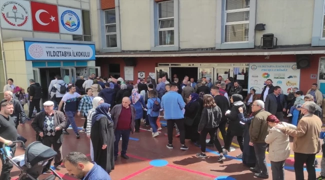 Oy vermek için sıraya giren vatandaşlar yaklaşık 500 metrelik kuyruk oluşturdu.