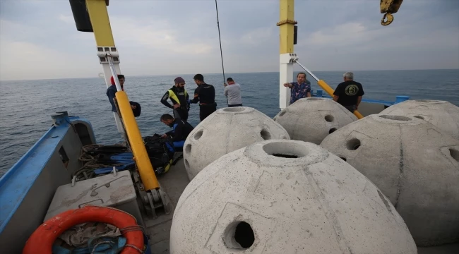 Önceden zemin araştırmasıyla belirlenen bölgeye ulaşan görevliler, resifleri vinç ve dalgıç adamlar yardımıyla suyun altına indirdi.