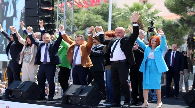 Konuşmaların ardından İYİ Parti'nin Manisa milletvekili adayları, meydandakileri selamladı.