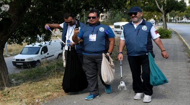 Erzurum Büyükşehir Belediyesi İtfaiye Kavşağı'nda 6 kişilik ekiple başlayan etkinlikte, katılımcılar, topladıkları plastikleri torbalarında biriktirdikten sonra çöp konteynırlarına boşalttı.