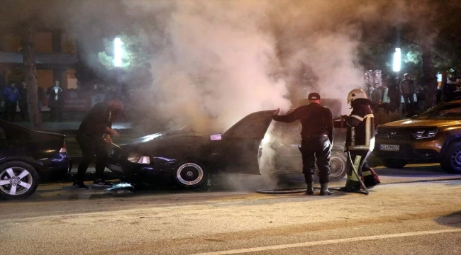 Kısa sürede söndürülen yangın sonucu otomobil kullanılamaz hale geldi.
