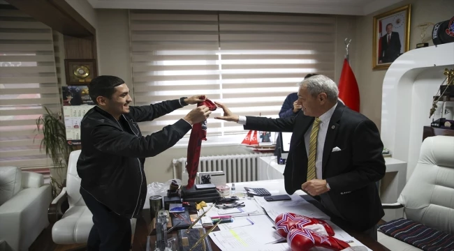 Olimpiyat şampiyonu boksör Albert Batyrgaziev'den Eyüp Gözgeç'e ziyaret