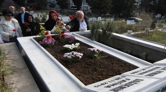Ailesi ve arkadaşları, dua ederek Dağdemir'in mezarına karanfil bıraktı.