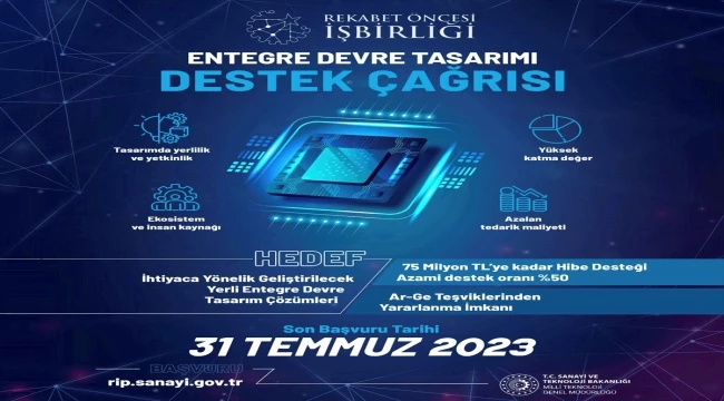 Türkiye, üretim konusunda global krizin yaşandığı çip sektörüne yönelik böyle bir dönemde stratejik bir hamle yaptı. Bakanlık, Türkiye'nin çip kapasitesinin artırılması, ekosistemin geliştirilmesi ve entegre devre tasarım kabiliyetinin ülke geneline yayılması hedefiyle "Rekabet Öncesi İşbirliği Projeleri-Entegre Devre Tasarımı Projeleri Çağrısı" açtı. Çağrıya 31 Temmuz'a kadar başvuru yapılabilecek.