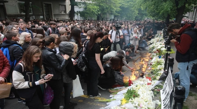 Belgrad'da binlerce kişi olayın yaşandığı okulun önüne giderek mum yaktı, hayatını kaybedenler için not ve oyuncaklar bıraktı.